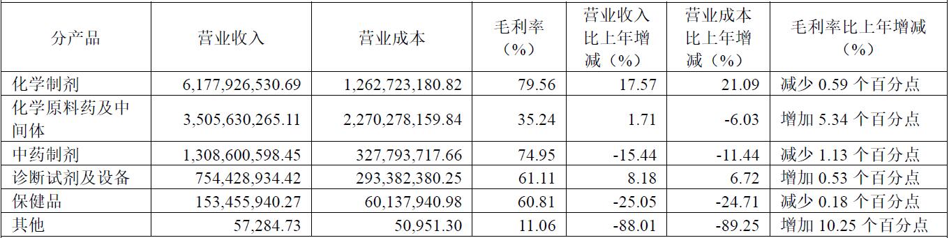 主营产品营收增速不及成本 一半江山的“化学制剂 ”毛利率下滑
