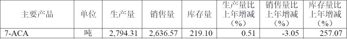 具体来看,公司主要产品7-ACA的销售量下滑,直接导致相应库存量增加。报告期内,7-ACA产品的生产量为2794.31吨,较上年增加0.51%,然而在生产量增加的同时,公司的销售量却拖后腿,销售量为2636.57吨,同比下降3.05%,这也直接导致相应产品的库存量增加了219.10吨,同比增加幅度高达257.07%。